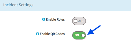 In Incident Settings toggle on Enable QR Codes, once enabled you will see a QR code appear below